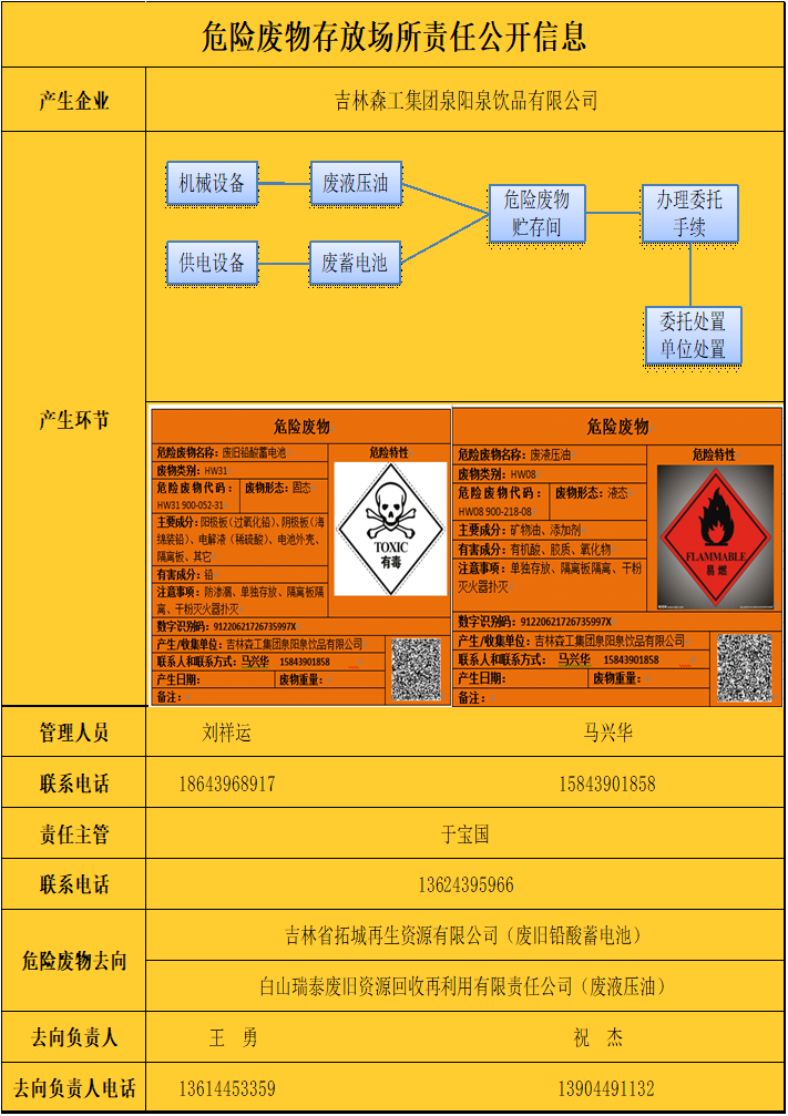 危險廢物存放場所責任公開信息